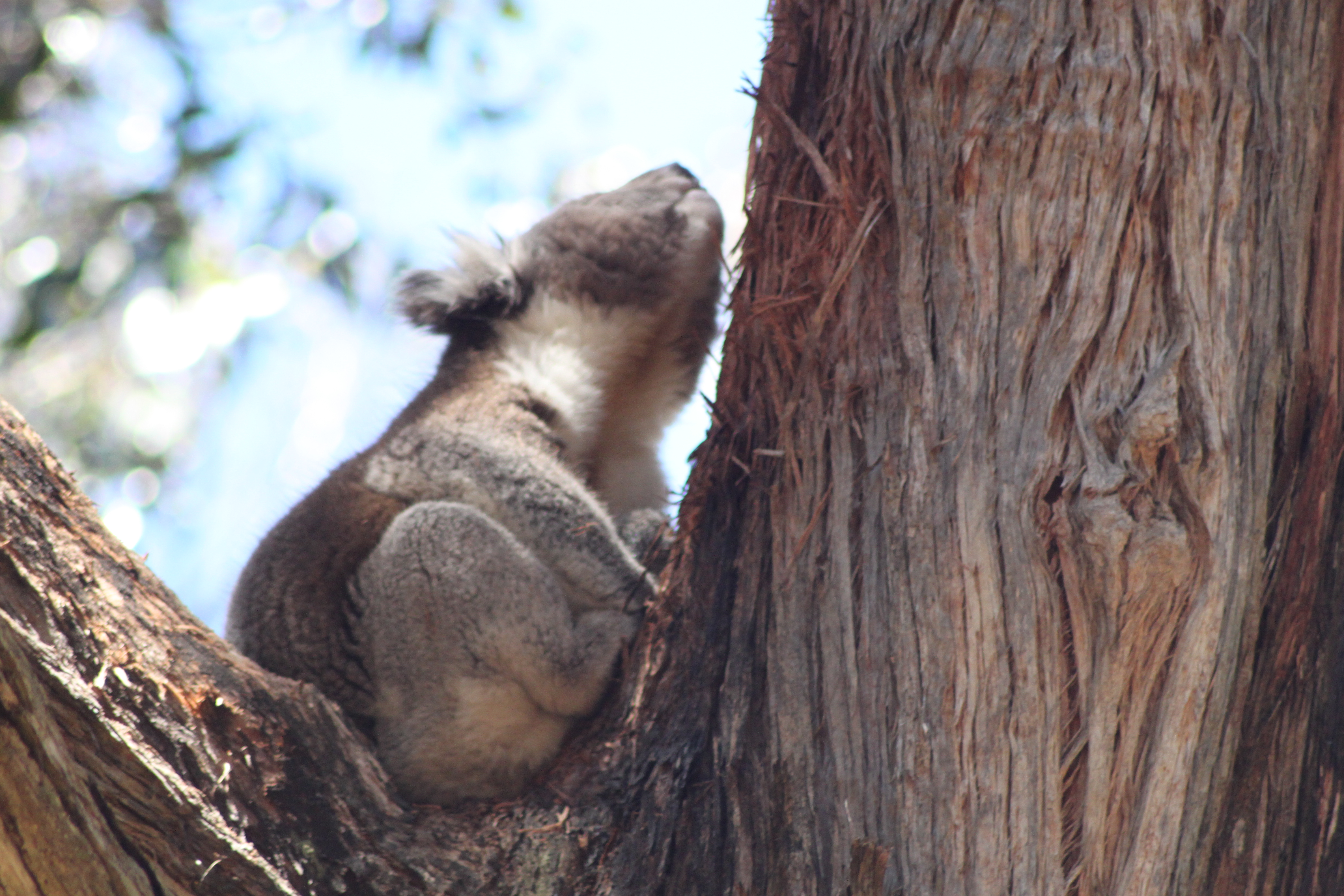 Koala diet is almost exclusively eucalypt leaves (Coastal Manna). They are active for a few hours per night and sleep most of the day. They are mostly solitary, but in the months of October – December, keep an ear out for their very loud, grunting call which is done to seek out a mating partner. They are strong climbers but move between habitat areas on the ground, so they are very susceptible to predators at this time.