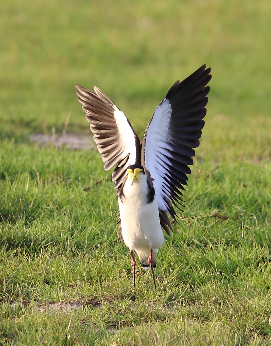 There are several of these fairly common birds within The Cape and a resident pair have set up territory around the central wetland complex. You can often see them venturing out into the grassy open spaces around the estate. They are noticeable by their noisy, grating call, are easily alarmed and can be quite aggressive (even toward humans) and protective of their territory. These birds have wing spurs – so this bird is also known as the Spur-winged Plover.