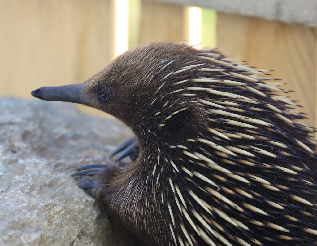 I have never seen one, but keep a look out for an ‘echidna train’ during the spring mating season where a group of males line up nose to tail and follow a female around.