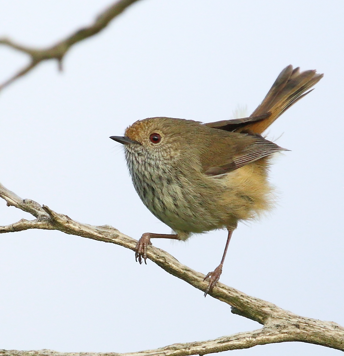 A common bird around The Cape, especially in the south east sector and around the coastal reserve. Difficult to observe as it moves very fast in thick understory growth where it feeds on insects. It can be seen singularly, in pairs or small groups and sometimes amongst a mixed flock of other small birds. If you are lucky, you may catch it out in the open quickly settling on an open branch.