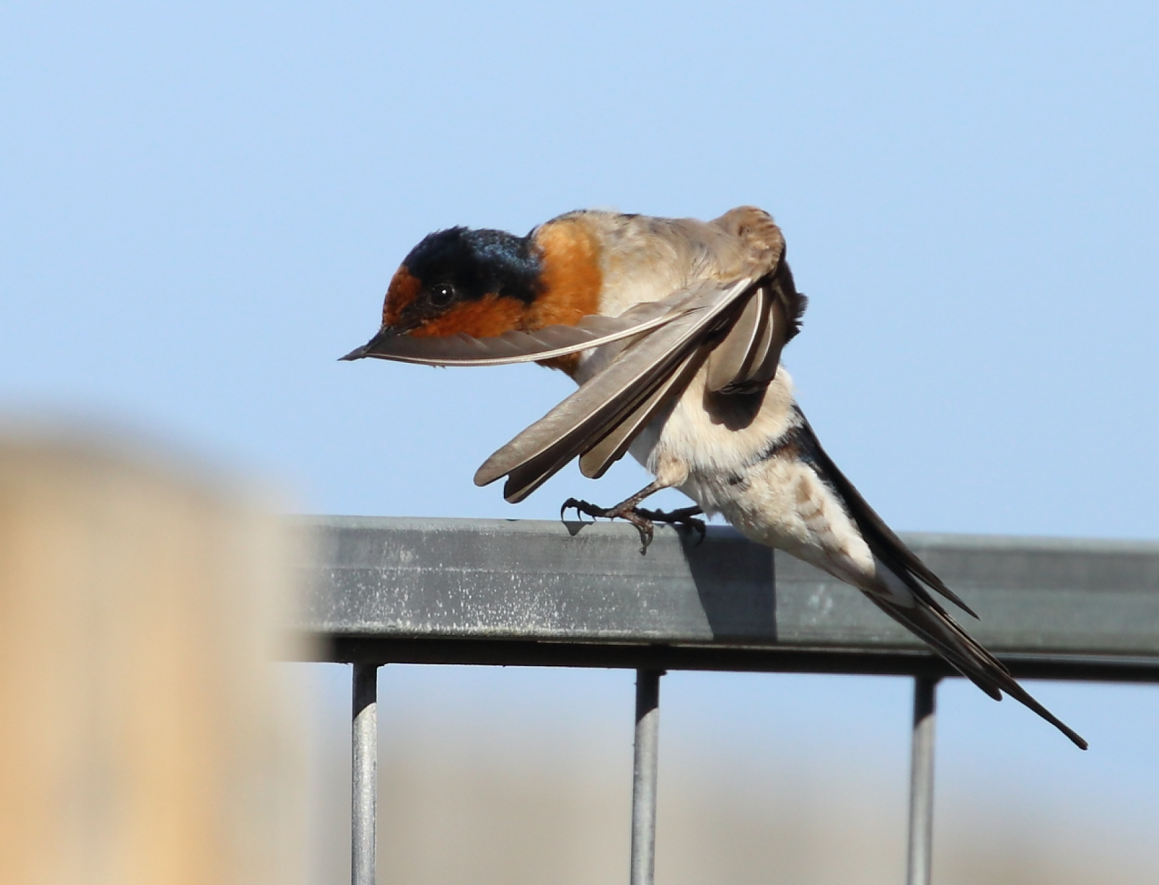 A very familiar bird around The Cape, it is seen all year round in all habitat sectors of the AO but it is more prolific from September through to the summer months. It forages on the wing and rarely perches for more than a moment. Beautiful plumage with a white chest, glossy blue-black back and rufous chin. It is partially migratory and some move north in the non-breeding season.